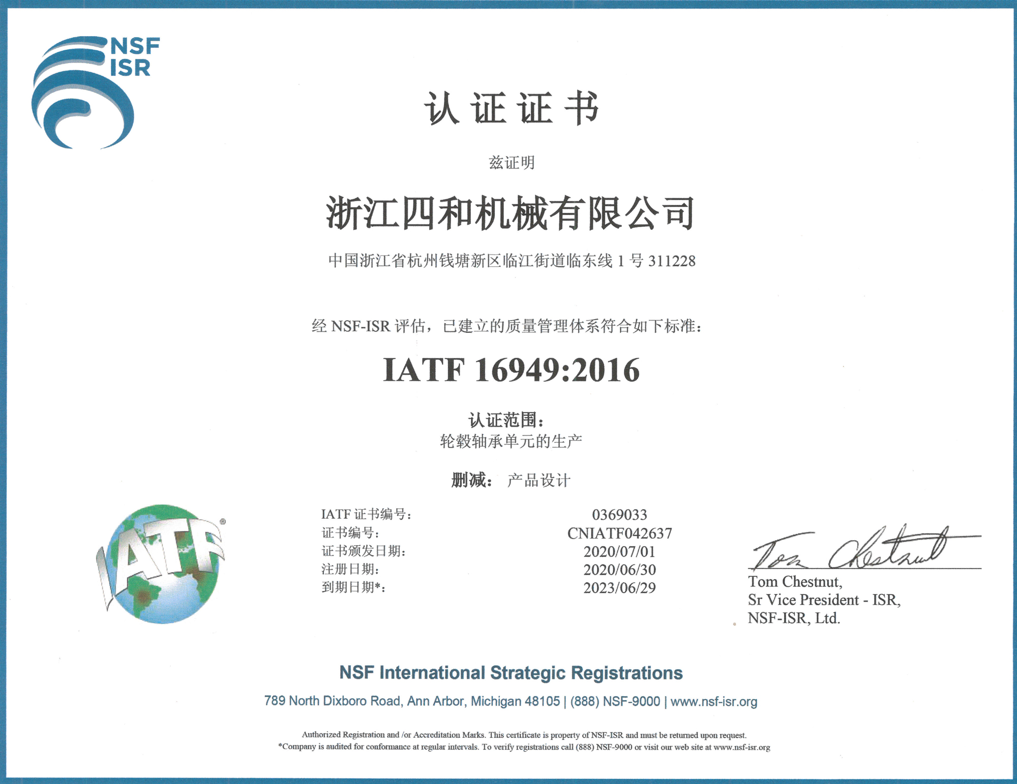 2020年通過IATF16949:2016質(zhì)量管理體系認證
